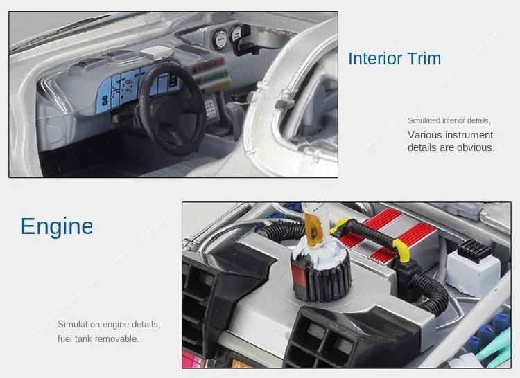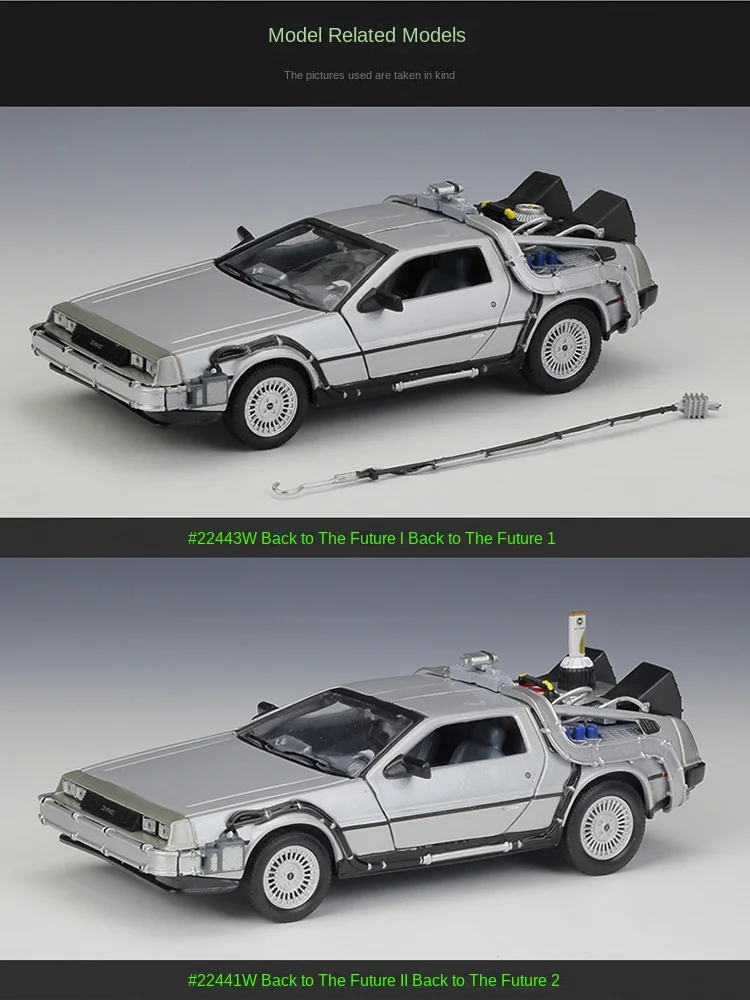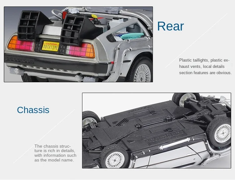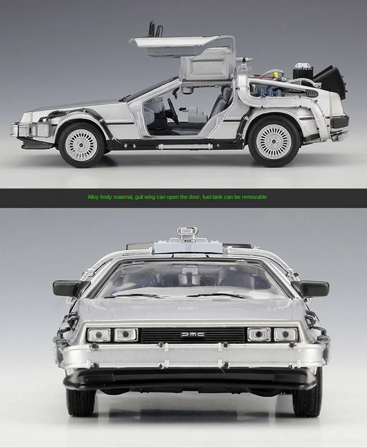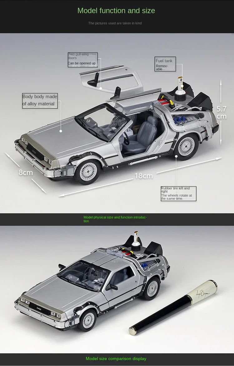 1/24 Diecast Alloy Model Car DMC-12 Delorean Back to the Future Time Machine Plastic Metal Toy Car for Kids Gift Collection