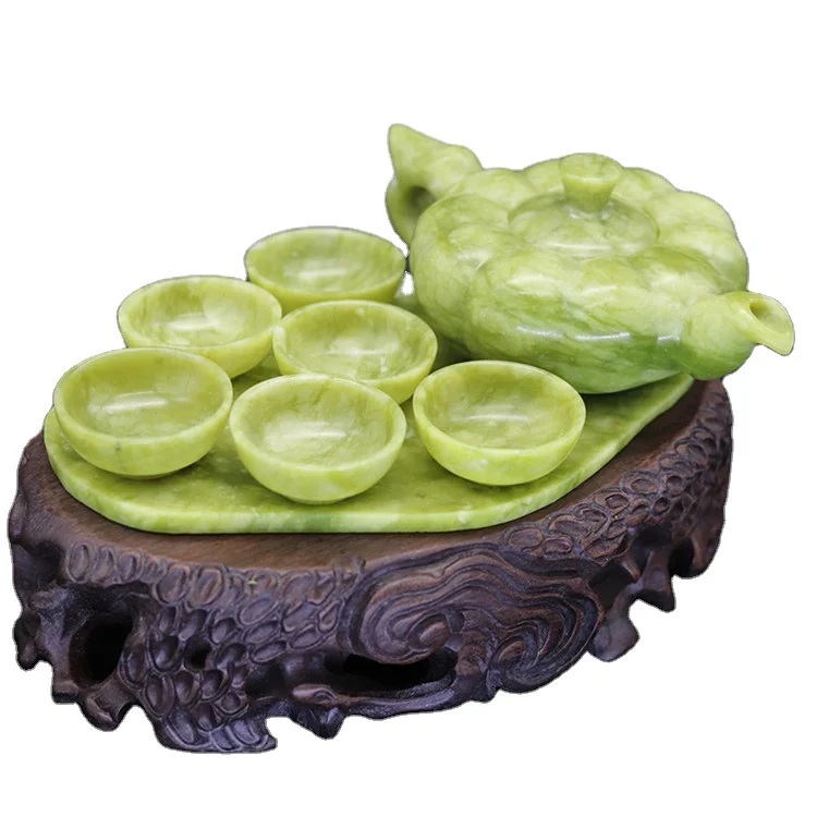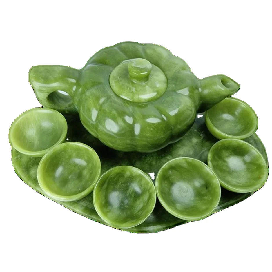 Chinese Traditional Handcraft Jade Teapot with 6 cups and 1 jade plate Set Collectible Jade Teapots & Tea Sets