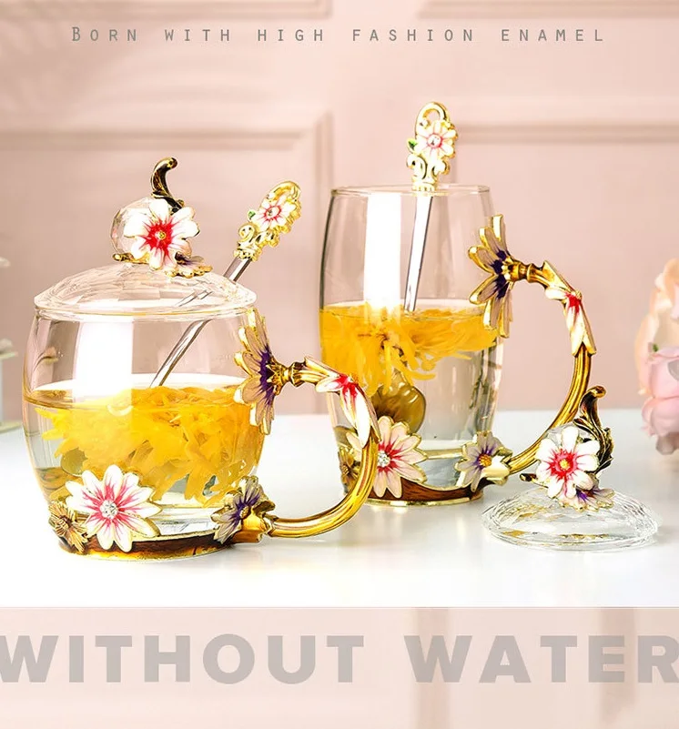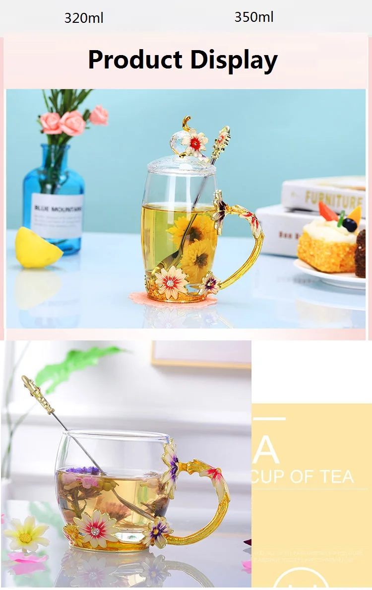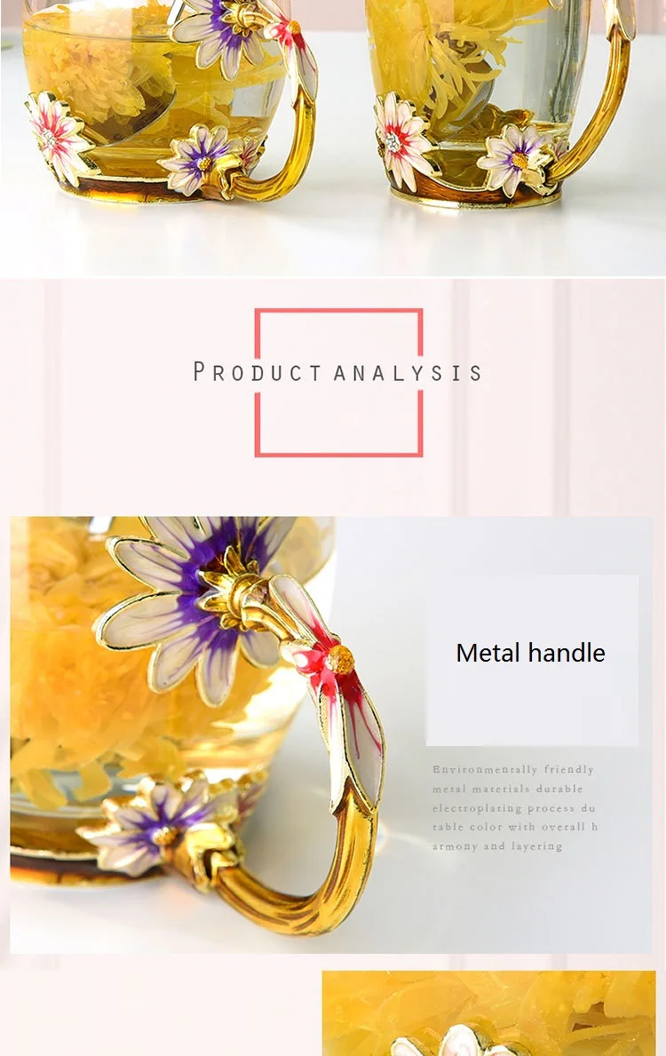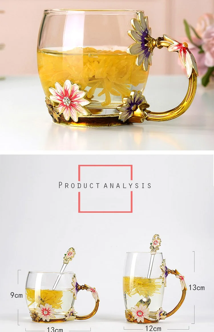 Creative Heat Resistant Crystal Glass Mug Enamel Glass Mug Flower Tea Set Coffee Cup Water Milk Coffee Drinkware Set for Gift