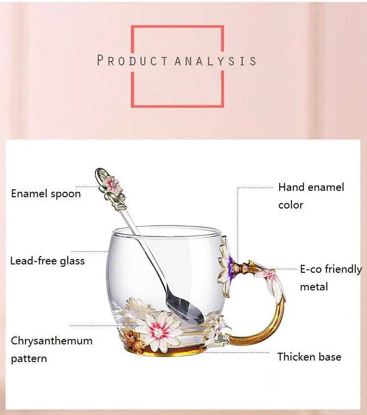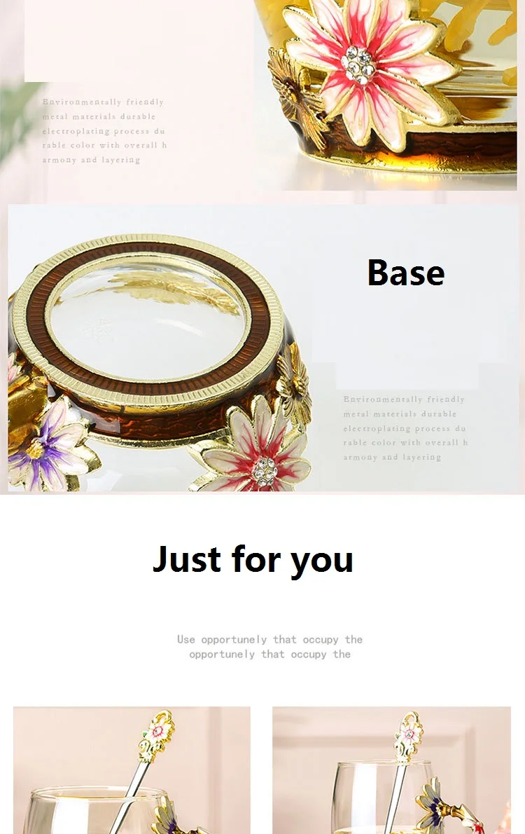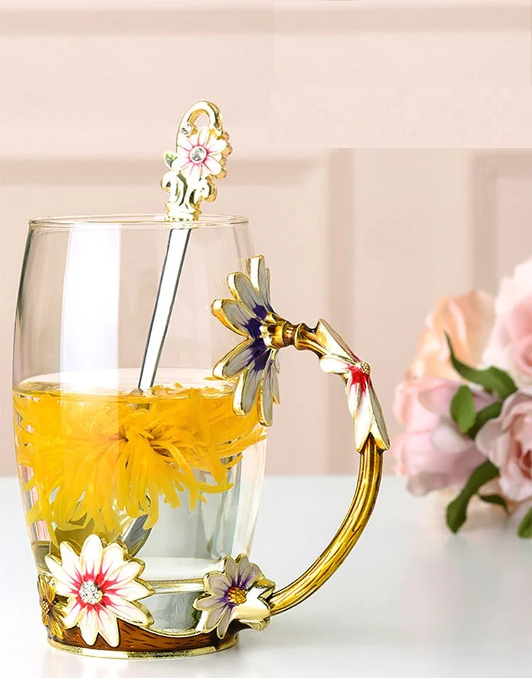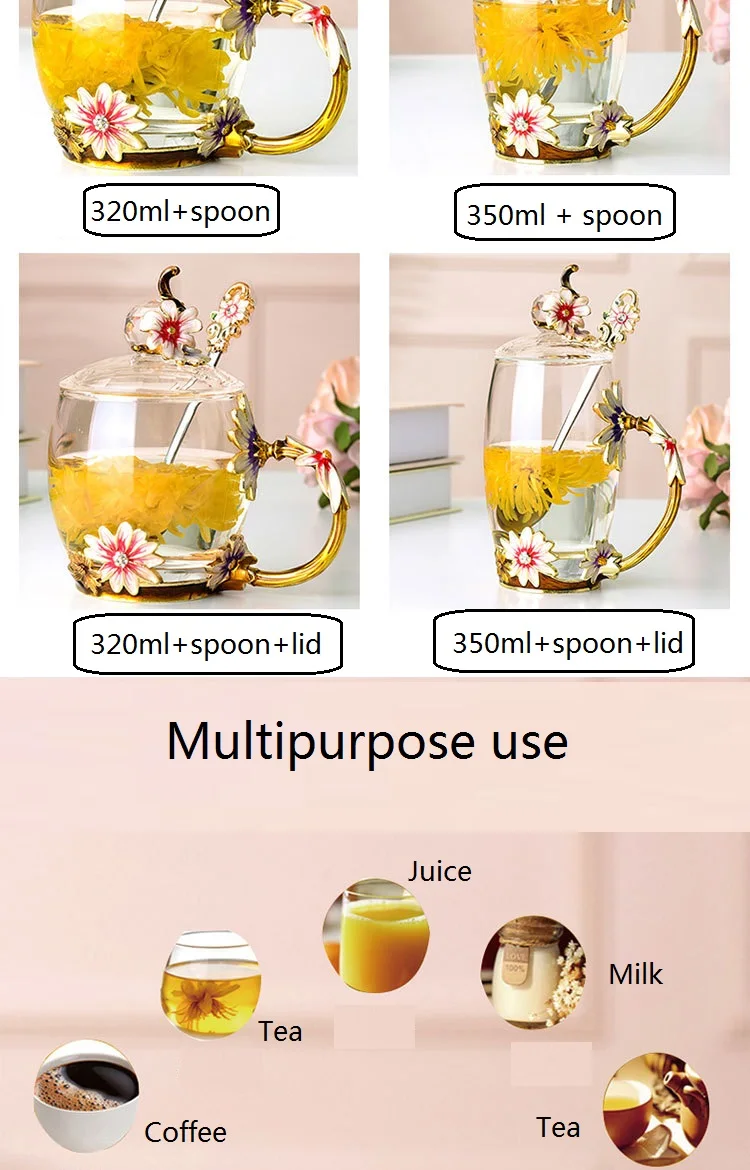 Creative Heat Resistant Crystal Glass Mug Enamel Glass Mug Flower Tea Set Coffee Cup Water Milk Coffee Drinkware Set for Gift
